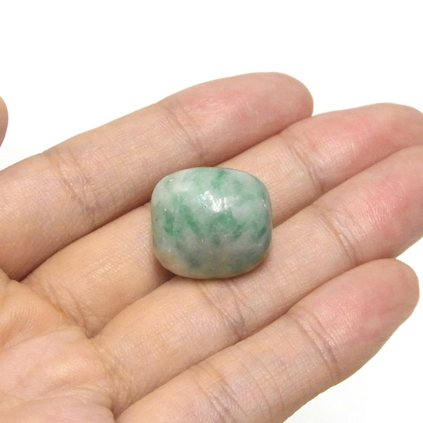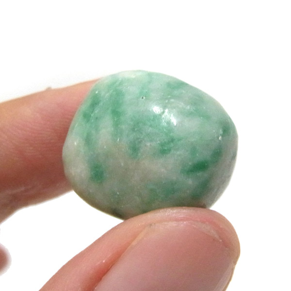 アメリカのカリフォルニア州産のマリポサイト、タンブルです。 カリフォルニアのマリポサで見つかったことからマリポサイトと名付けられました。マリポサイトは正式に分類された鉱物名ではありませんが、モスコバイト(白雲母)のクロムを含む変種ということになっています。マリポサイト独特の緑色はクロムに由来しています。白と緑のマーブル模様になっているものがマリポサイトの特徴でコンビネーションストーンといわれています。とてもきれいな緑で癒されます。
