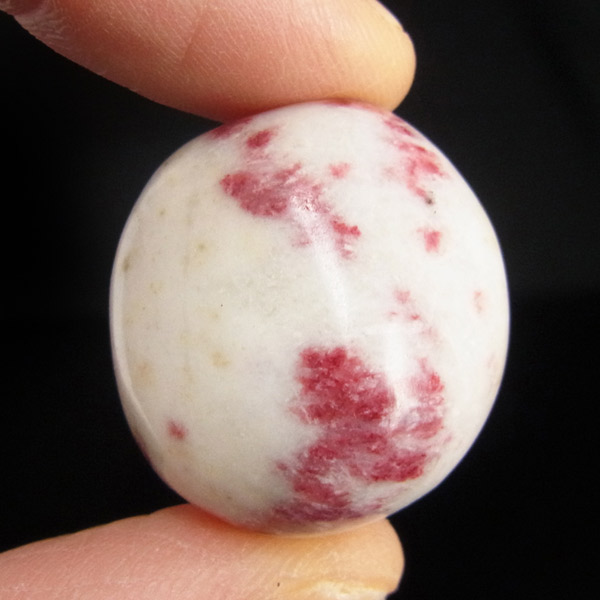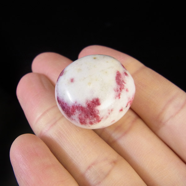 ペルー産のシナバークォーツ、タンブルです。ドロマイト入りの水晶の中に赤いシナバー(辰砂)の結晶が確認されます。ドラゴンブラッド(龍の血)ともいわれ、豊かさを引き寄せる石とされています。