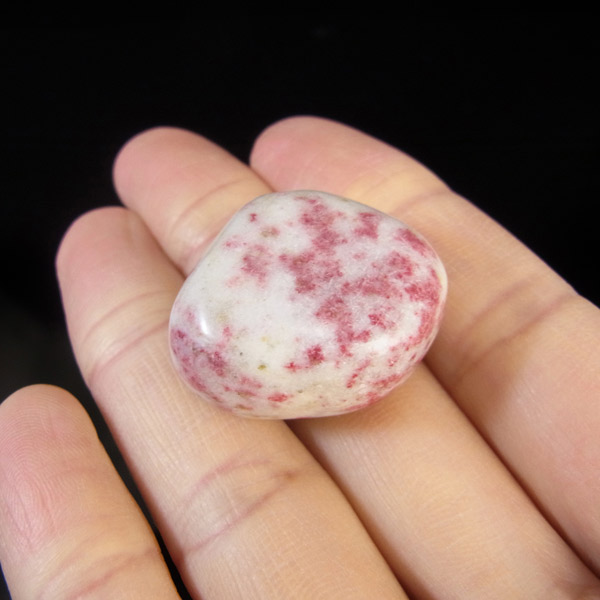ペルー産のシナバークォーツ、タンブルです。ドロマイト入りの水晶の中に赤いシナバー(辰砂)の結晶が確認されます。ドラゴンブラッド(龍の血)ともいわれ、豊かさを引き寄せる石とされています。