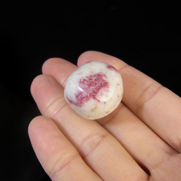 ペルー産のシナバークォーツ、タンブルです。ドロマイト入りの水晶の中に赤いシナバー(辰砂)の結晶が確認されます。ドラゴンブラッド(龍の血)ともいわれ、豊かさを引き寄せる石とされています。