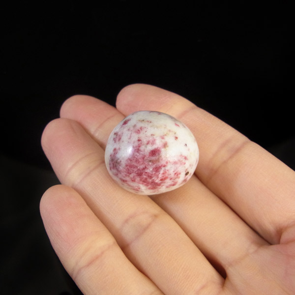 ペルー産のシナバークォーツ、タンブルです。ドロマイト入りの水晶の中に赤いシナバー(辰砂)の結晶が確認されます。ドラゴンブラッド(龍の血)ともいわれ、豊かさを引き寄せる石とされています。