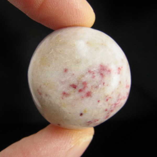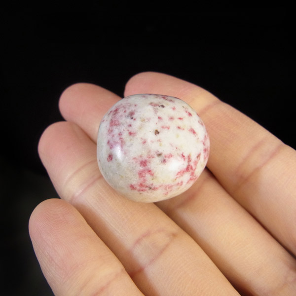ペルー産のシナバークォーツ、タンブルです。ドロマイト入りの水晶の中に赤いシナバー(辰砂)の結晶が確認されます。ドラゴンブラッド(龍の血)ともいわれ、豊かさを引き寄せる石とされています。