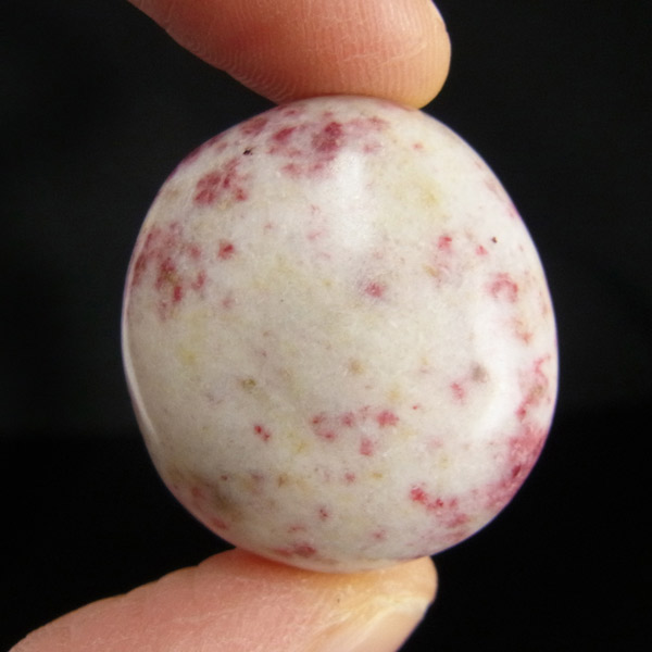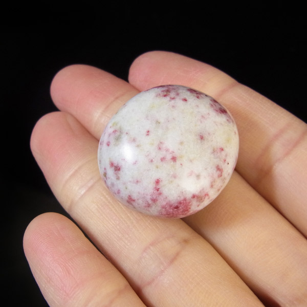 ペルー産のシナバークォーツ、タンブルです。ドロマイト入りの水晶の中に赤いシナバー(辰砂)の結晶が確認されます。ドラゴンブラッド(龍の血)ともいわれ、豊かさを引き寄せる石とされています。