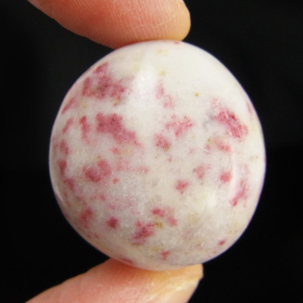 ペルー産のシナバークォーツ、タンブルです。ドロマイト入りの水晶の中に赤いシナバー(辰砂)の結晶が確認されます。ドラゴンブラッド(龍の血)ともいわれ、豊かさを引き寄せる石とされています。