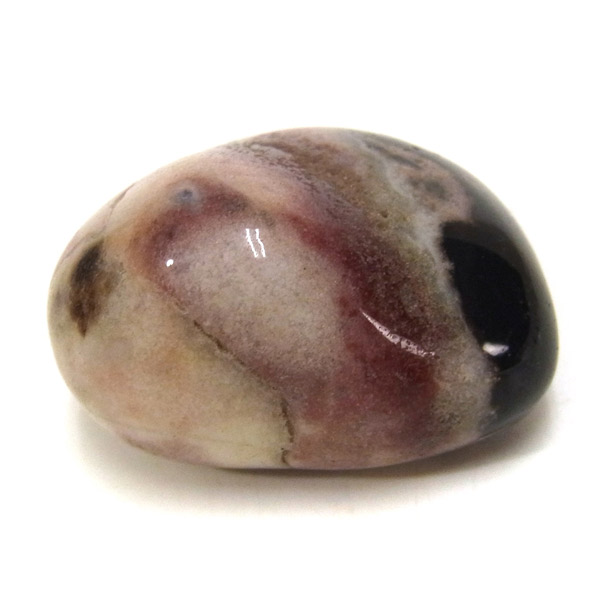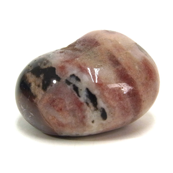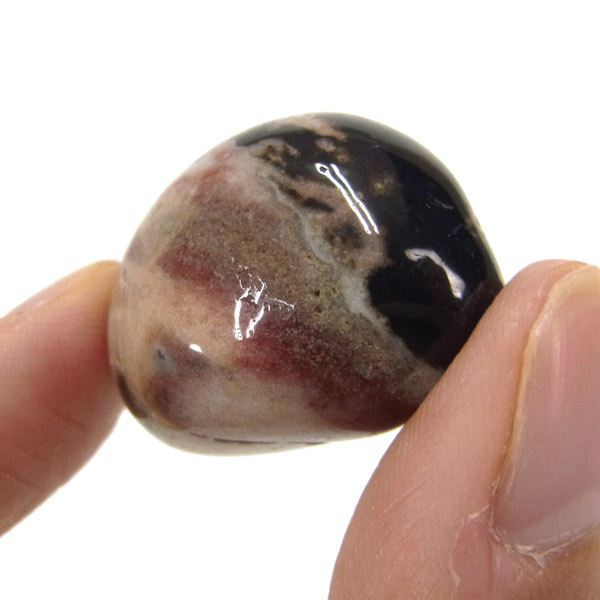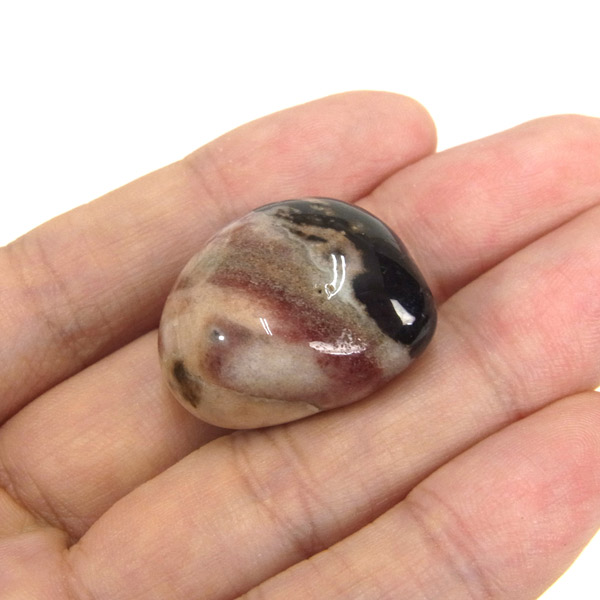 インド産のスレイマンアゲート、タンブルです。 スレイマンアゲートは白黒模様が特徴で縞メノウ(天眼石)の仲間です。 独特で縞メノウと結晶化した二酸化ケイ素含む水溶液が周期的に沈殿し、そのたびごとに不純物が取り込まれ、層状に結晶化したものです。白い部分が多いスレイマンアゲートはより稀少になります。