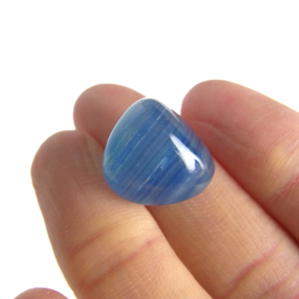 アルゼンチン産のブルーカルサイト、タンブルです。 カルサイトは、イエロー、ブルー、ピンクなど様々な色合いを持つ石です。これらの色は、鉱物内に含まれている成分により色が異なります。カルサイトの中で青色のものがブルーカルサイトと呼ばれます。ブルーカルサイトには大きく分けて「若干透明感がある鮮やかな色合い」「ミルキーで淡い色合い」の2種類に分かれます。これらは産出される場所によって異なります。ブルーカルサイトの中でもミルキータイプよりも、色味の鮮やかなタイプは産地が限られることから希少性が高くなります。その中でも特にアルゼンチンで採れるものは優れた発色からアクアティンカルサイトと特別に呼んでいます。