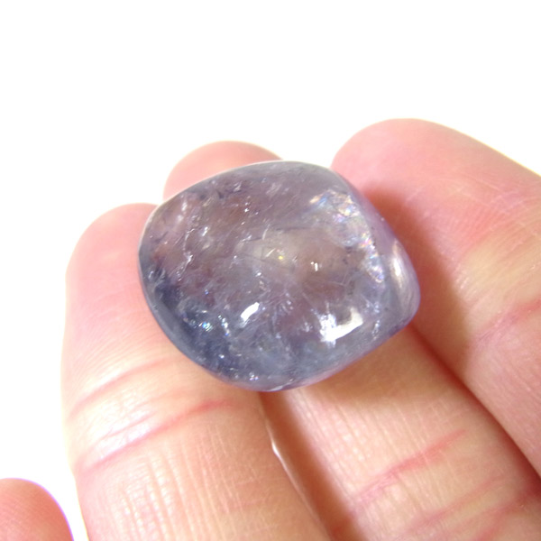 インド産のAAAアイオライト、タンブルです。アイオライトは見る角度によって色が変化するという神秘的な鉱石です。広域変成岩や接触変成岩などで発見されるケイ酸塩鉱物の一種で、多色性が強く、見る角度によって群青色から淡い枯れ草色に変化します。アイオライトの中でも、透明感があり、発色の良い大変グレードの高い希少なものをご用意しました。