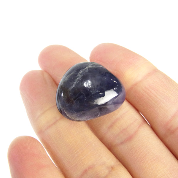 インド産のAAAアイオライト、タンブルです。アイオライトは見る角度によって色が変化するという神秘的な鉱石です。広域変成岩や接触変成岩などで発見されるケイ酸塩鉱物の一種で、多色性が強く、見る角度によって群青色から淡い枯れ草色に変化します。アイオライトの中でも、透明感があり、発色の良い大変グレードの高い希少なものをご用意しました。