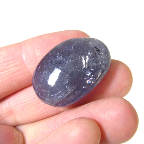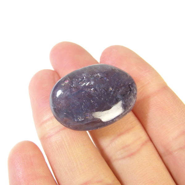 インド産のAAAアイオライト、タンブルです。アイオライトは見る角度によって色が変化するという神秘的な鉱石です。広域変成岩や接触変成岩などで発見されるケイ酸塩鉱物の一種で、多色性が強く、見る角度によって群青色から淡い枯れ草色に変化します。アイオライトの中でも、透明感があり、発色の良い大変グレードの高い希少なものをご用意しました。