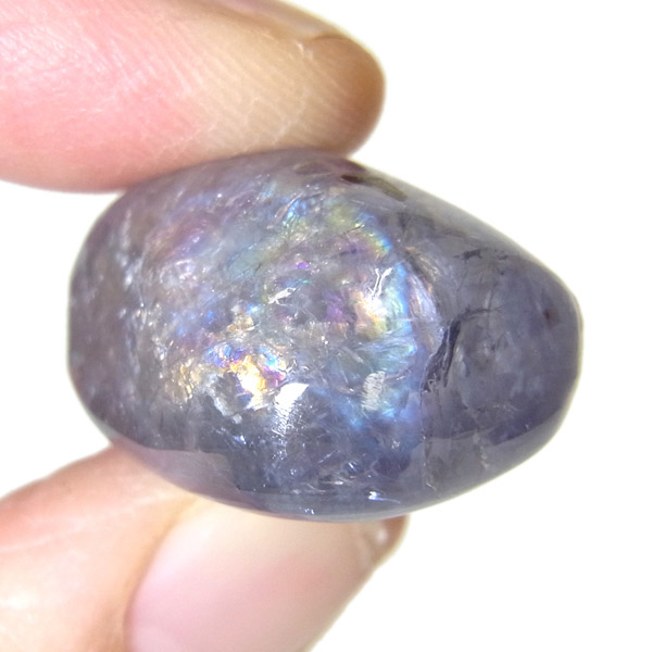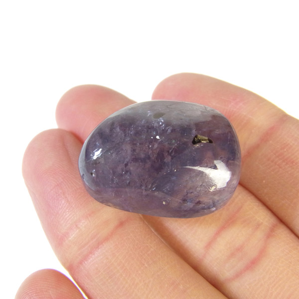 インド産のAAAアイオライト、タンブルです。アイオライトは見る角度によって色が変化するという神秘的な鉱石です。広域変成岩や接触変成岩などで発見されるケイ酸塩鉱物の一種で、多色性が強く、見る角度によって群青色から淡い枯れ草色に変化します。アイオライトの中でも、透明感があり、発色の良い大変グレードの高い希少なものをご用意しました。