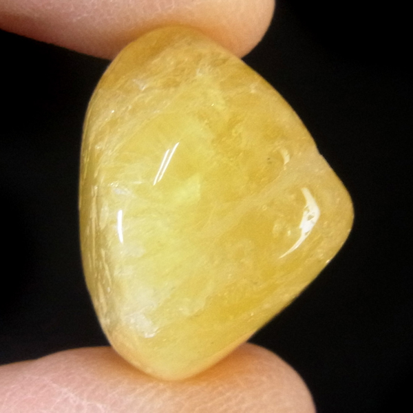 タンザニア産のゴールデンダンビュライト、タンブルです。ダンビュライトと言えば、透明度の高い結晶や、薄いピンク色の結晶がよく知られています。 光の反射が強く 屈折率が高いことから、良質な原石をカットすると水晶やトパーズよりも透明で澄んでいて、かつてダイアモンドの代用品として利用されていたこともあります。 ところが、タンザニアで産するダンビュライトは 明るいイエローの発色で、塊状で産するのが特徴です。 ゴールデンダンビュライトは非常に希少価値が高く、インペリアルトパーズよりも稀少というほどです。 透明度を伴う美しいものになると、イエローを通り越してまさにゴールドに映える、いつまでも眺めていたくなる逸品です。