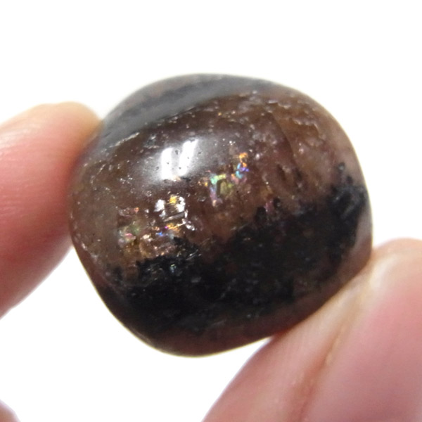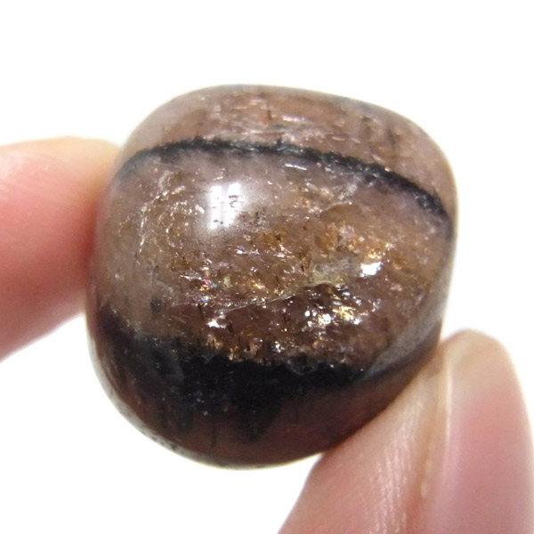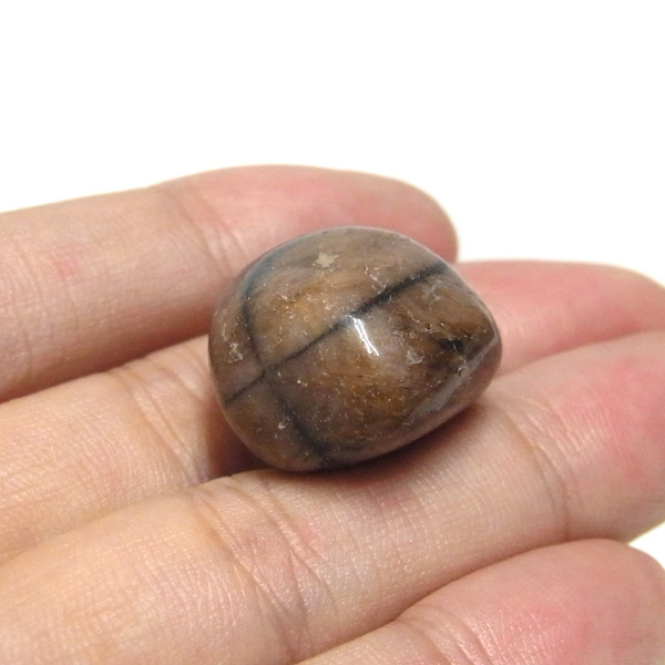 スペイン産、キャストライトタンブルです。濃いブラウンに黒の十字模様が大変魅力的な石です。 キャストライトの名前は、輪切りにすると黒い十字の模様が現れることから、ギリシャ語で「対角線的な配列」という意味の「Chiastos」に由来しています。 キャストライトは、黒鉛(グラファイト)などの黒色含有物を対称的に含んだ紅柱石です。クロスストーンとも呼ばれ、粘板岩と花こう岩の接触部に産出します。 今回ご用意した商品は、見事な十字がハッキリと見える最高ランクのものです。また、結晶がキラキラと美しく、角度によってはレインボーが見えるものもございます。