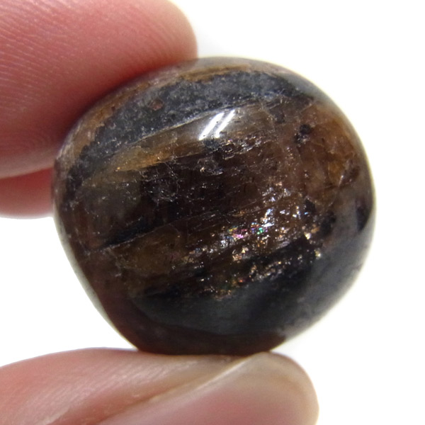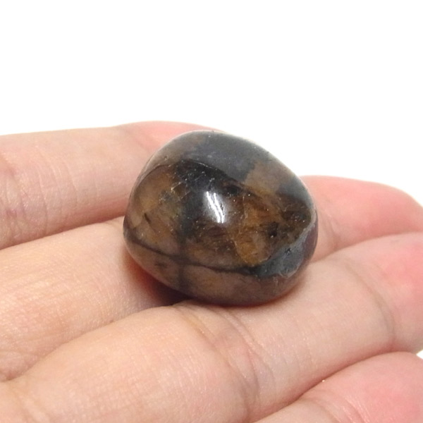 スペイン産、キャストライトタンブルです。濃いブラウンに黒の十字模様が大変魅力的な石です。 キャストライトの名前は、輪切りにすると黒い十字の模様が現れることから、ギリシャ語で「対角線的な配列」という意味の「Chiastos」に由来しています。 キャストライトは、黒鉛(グラファイト)などの黒色含有物を対称的に含んだ紅柱石です。クロスストーンとも呼ばれ、粘板岩と花こう岩の接触部に産出します。 今回ご用意した商品は、見事な十字がハッキリと見える最高ランクのものです。また、結晶がキラキラと美しく、角度によってはレインボーが見えるものもございます。