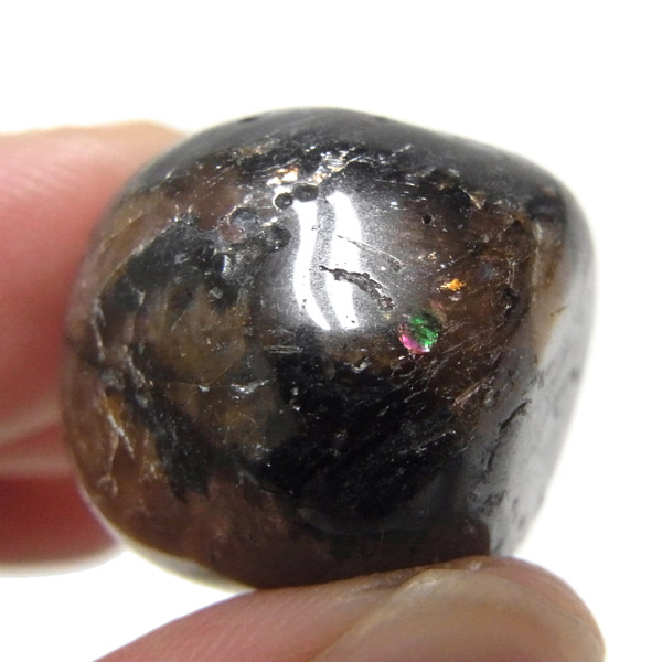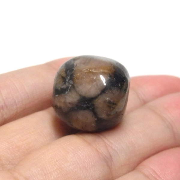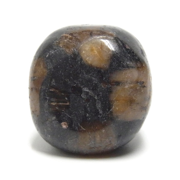 スペイン産、キャストライトタンブルです。濃いブラウンに黒の十字模様が大変魅力的な石です。 キャストライトの名前は、輪切りにすると黒い十字の模様が現れることから、ギリシャ語で「対角線的な配列」という意味の「Chiastos」に由来しています。 キャストライトは、黒鉛(グラファイト)などの黒色含有物を対称的に含んだ紅柱石です。クロスストーンとも呼ばれ、粘板岩と花こう岩の接触部に産出します。 今回ご用意した商品は、見事な十字がハッキリと見える最高ランクのものです。また、結晶がキラキラと美しく、角度によってはレインボーが見えるものもございます。