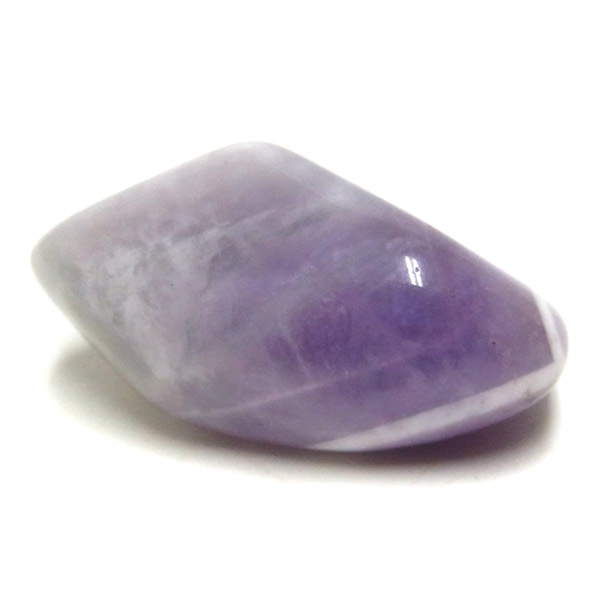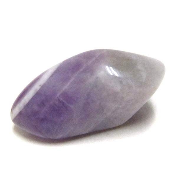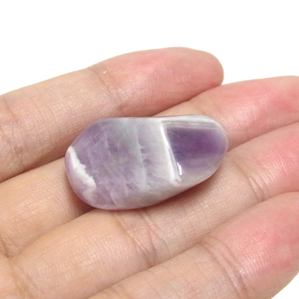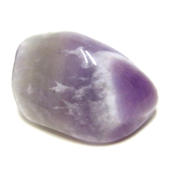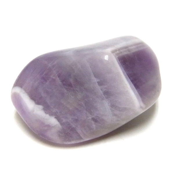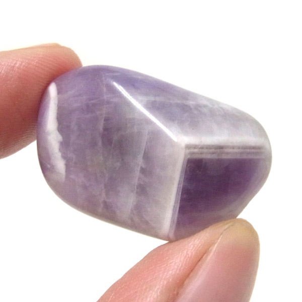ブラジル産、シェブロンアメジストのタンブルです。 シェブロンとは、層状の紋章模様がギザギザと山形に見えることから、山を意味する言葉です。 シェブロンアメジストは、濃淡のある紫色のアメジストと、細い線状の白色をした石英が交互に重なりながら層状に成長し、このような模様が形成されているのです。 見事にハッキリとしたVの字が、大変美しいアメジストです。 ヒーリングの世界でも、大変すぐれた物とされて重宝されているそうです。
