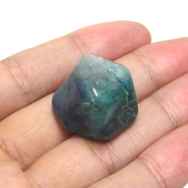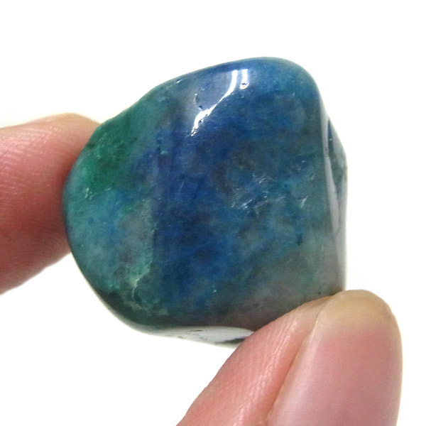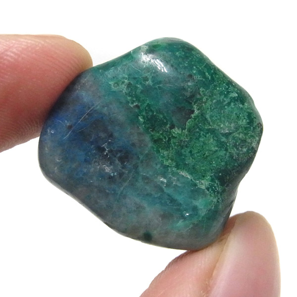 ペルー産クォンタムクワトロシリカ、タンブルです。 クォンタムクワトロシリカは、4種類の鉱物が混ざり合った鉱物です。 「クォンタム=量子・エネルギー」「クアトロ=4」で、4個のエネルギー体が集まった「シリカ(二酸化ケイ素)」という意味です。 マラカイト・クリソコラ・シャッタカイト・スモーキークォーツ4つの要素で構成されています。 クォンタムクアトロシリカとう名前は流通名称であり正式な鉱物名称はありませんが、癒しの力が強いことから、別名「エンジェルストーン」とも呼ばれています。 このことから、ヒーリングストーンとしても人気を誇っています。 アースブルーのクリソコラの中に、グリーン・ブラウン・ホワイトが美しく魅了してくれます。