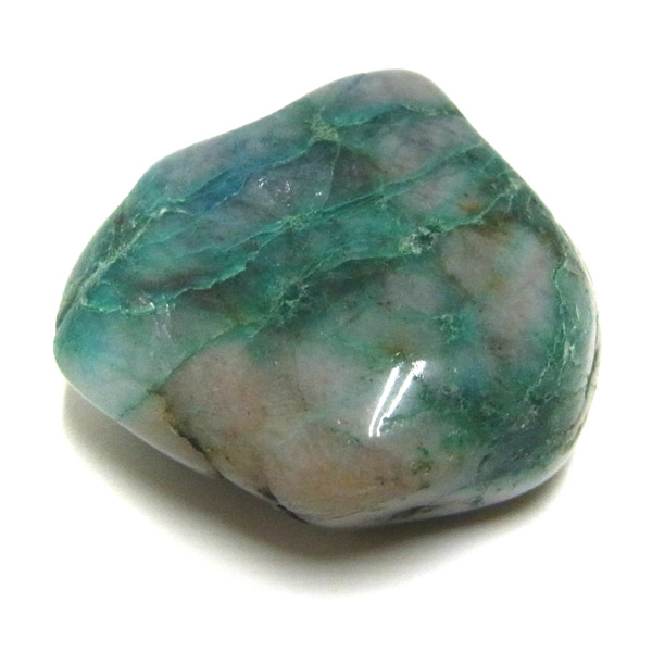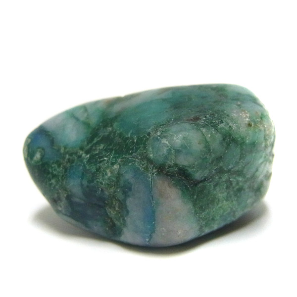 ペルー産クォンタムクワトロシリカ、タンブルです。 クォンタムクワトロシリカは、4種類の鉱物が混ざり合った鉱物です。 「クォンタム=量子・エネルギー」「クアトロ=4」で、4個のエネルギー体が集まった「シリカ(二酸化ケイ素)」という意味です。 マラカイト・クリソコラ・シャッタカイト・スモーキークォーツ4つの要素で構成されています。 クォンタムクアトロシリカとう名前は流通名称であり正式な鉱物名称はありませんが、癒しの力が強いことから、別名「エンジェルストーン」とも呼ばれています。 このことから、ヒーリングストーンとしても人気を誇っています。 アースブルーのクリソコラの中に、グリーン・ブラウン・ホワイトが美しく魅了してくれます。