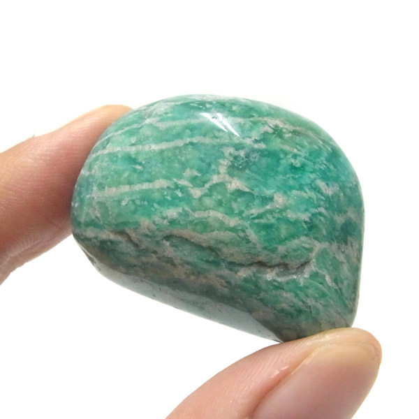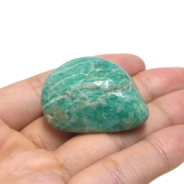 ロシア産のアマゾナイト、タンブルです。アマゾナイトといえば、世界中で広く産地が分布しています。 産地により特徴も様々で、一般的にはロシア産のアマゾナイトは、グリーンに霜を降ったような白の発色が美しいことが特徴です。 ミントをイメージする清々しいグリーンが大変人気の石です。