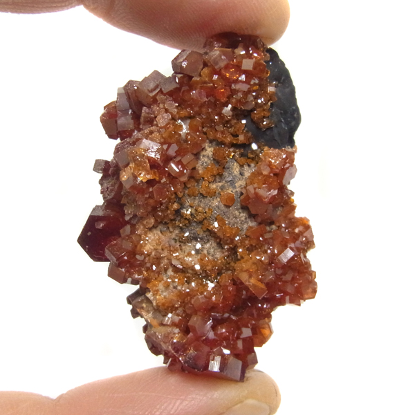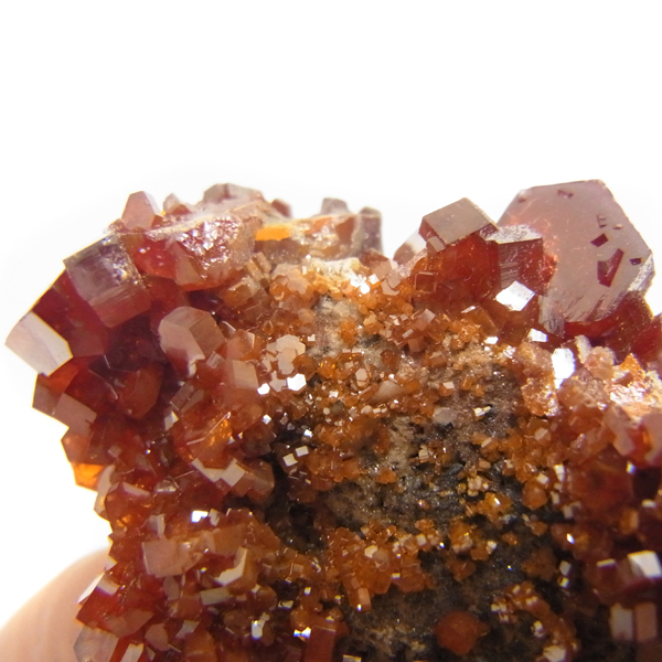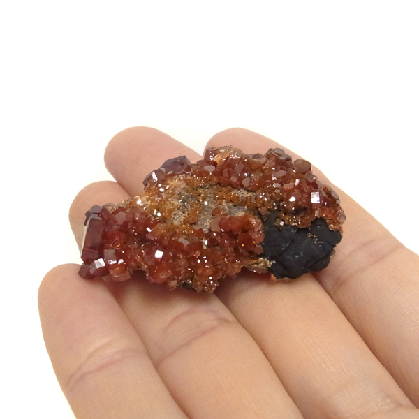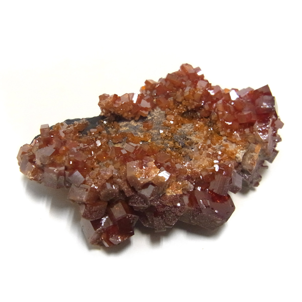 モロッコのミブラーデン鉱山より産出されたバナジナイト原石です。非常に高品質な結晶を有しています。 バナジナイトは、とても明るいオレンジ色や、濃い赤色、ワインレッドなどの色があります。 美しい六角板状の結晶は、艶やかな表面から光を非常によく反射させ、キラキラと大変魅力的です。