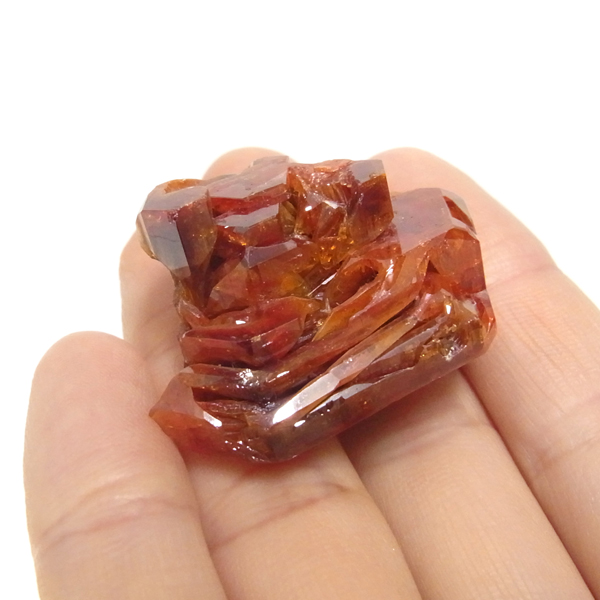 バナジナイトは、とても明るいオレンジ色や、濃い赤色、ワインレッドなどの色があります。 美しい六角板状の結晶は、艶やかな表面から光を非常によく反射させ、キラキラと大変魅力的です。