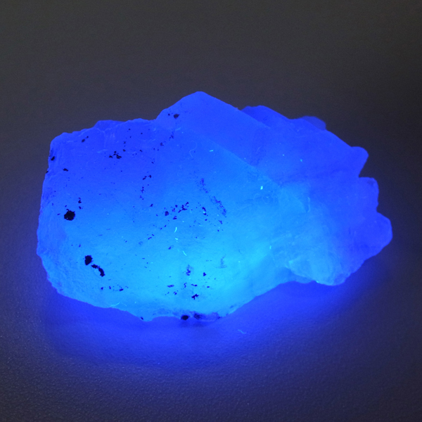 黒い森産のフローライト原石です。当たる光の関係で、ブルーやグリーンに見える美しいフローライトの結晶です。このフローライトはドイツの「シュヴァルツヴァルト」で産出されたものです。「シュヴァルツヴァルト」とは、ドイツ語で「黒い森」を意味し、この森は、密集して生えるトウヒの木によって、暗く(黒く)見える事によりその名が付きました。ここで産出されるフローライトはブルーグリーンの美しいものが多く、塊状に出土します。またフローライトですのでブラックライトにより、蛍光を示します(写真3枚目)。フローライトの鮮やかなブルーグリーンの艶やかな結晶をお楽しみください。