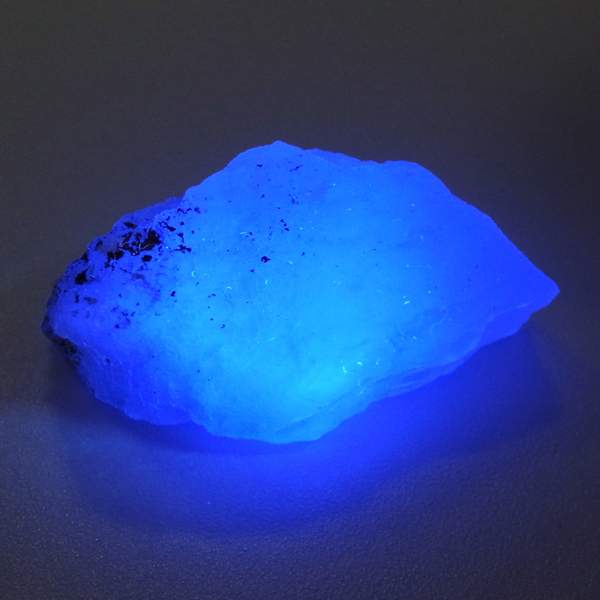 黒い森産のフローライト原石です。当たる光の関係で、ブルーやグリーンに見える美しいフローライトの結晶です。このフローライトはドイツの「シュヴァルツヴァルト」で産出されたものです。「シュヴァルツヴァルト」とは、ドイツ語で「黒い森」を意味し、この森は、密集して生えるトウヒの木によって、暗く(黒く)見える事によりその名が付きました。ここで産出されるフローライトはブルーグリーンの美しいものが多く、塊状に出土します。またフローライトですのでブラックライトにより、蛍光を示します(写真3枚目)。フローライトの鮮やかなブルーグリーンの艶やかな結晶をお楽しみください。