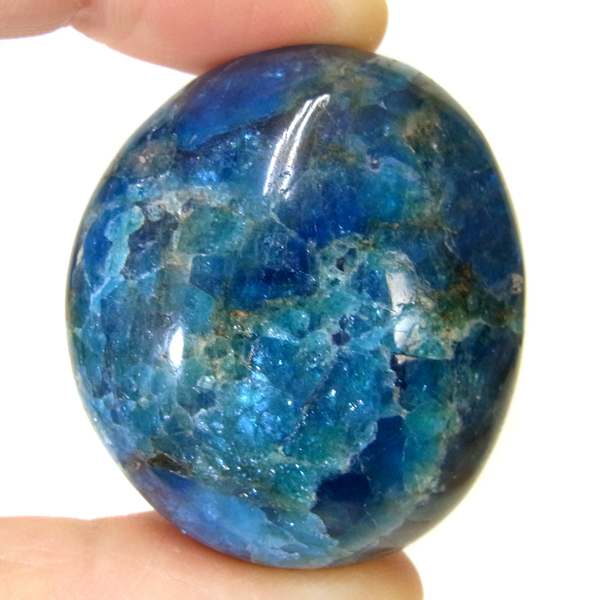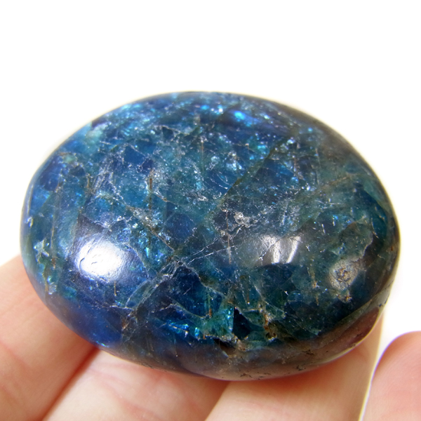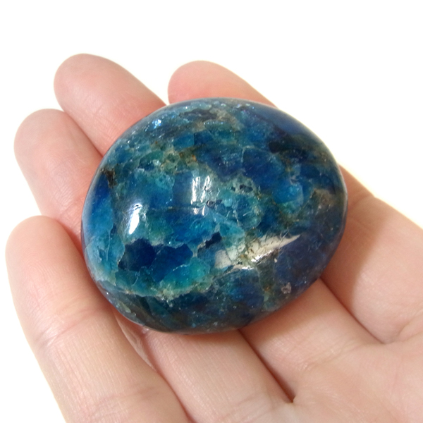 マダガスカル産のブルーアパタイト、ペブルです。アパタイトはブラジルなどが有名な産地ですが、今回ご用意した商品は、マダガスカル産のものです。明るめで鮮やかなライトブルーが特徴です。手に持って動かすと表面にシラーの輝きが見られます。歯磨き粉などにも含まれる、まさにパワーストーン。骨や歯にいいと言われていますが、何よりマイナスイオンの放出量の多さです。トルマリンをはるかに凌ぐその量は、鉱物界No.1ともいわれています。