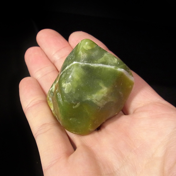 アメリカ・ワシントン州産のワシントンサーペンティン(ヒーラーライト)、ペブルです。 ワシントンサーペンティンは、明るいライムグリーン色をしており、やわらかな感触があります。 パッと見た感じは黄色の印象が強いと思いますが、良く見てみると黄色ではなくもっと複雑で独特の色合いをしていることが分かります。 アメリカの北西部で新しく発見されたケイ酸マグネシウムで、マグネサイト鉱脈から、マグネサイトと一緒に発掘されます。