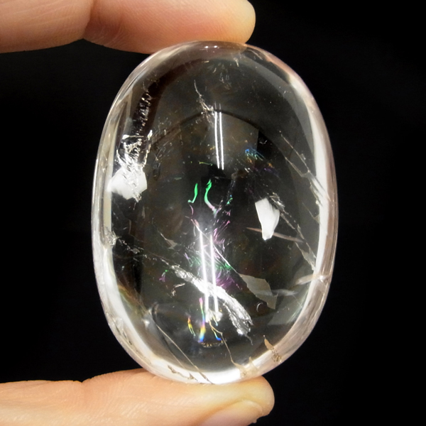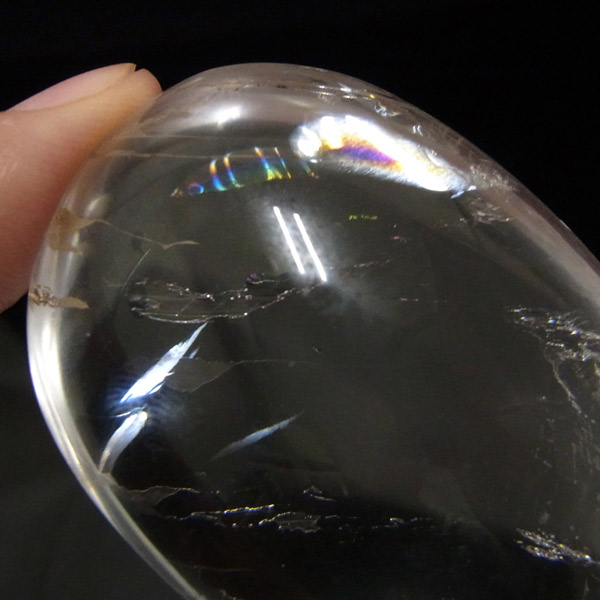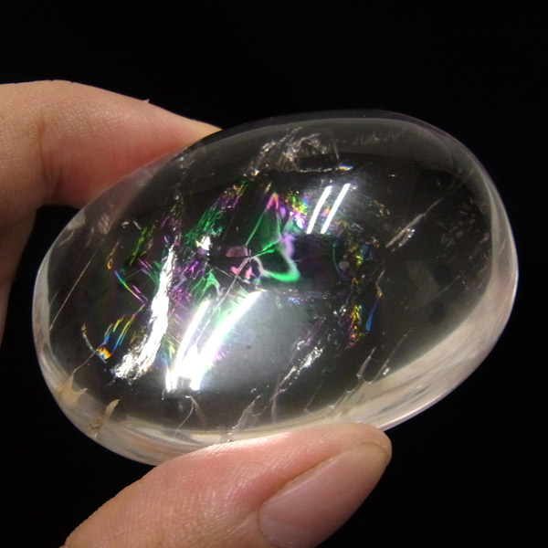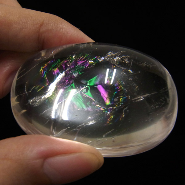 ブラジル産アイリスクォーツ(レインボークォーツ)、ペブルです。透明度が高く、大きさもあるレインボー部分のみを磨き上げた特別なペブル。まさに虹色の輝きで大変美しいです。写真よりも動画の方が分かりやすいと思いますので動画もご参照下さい。