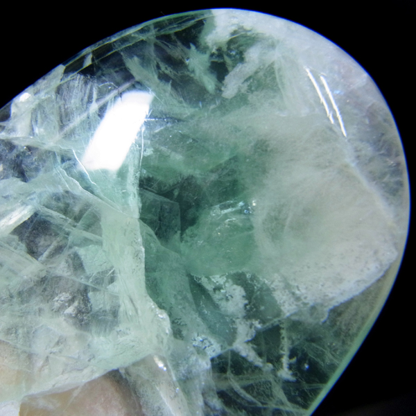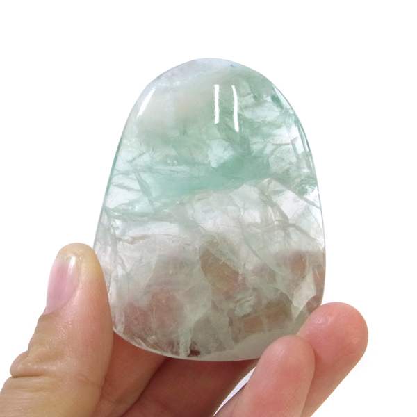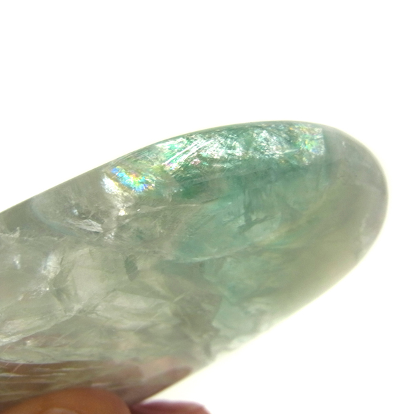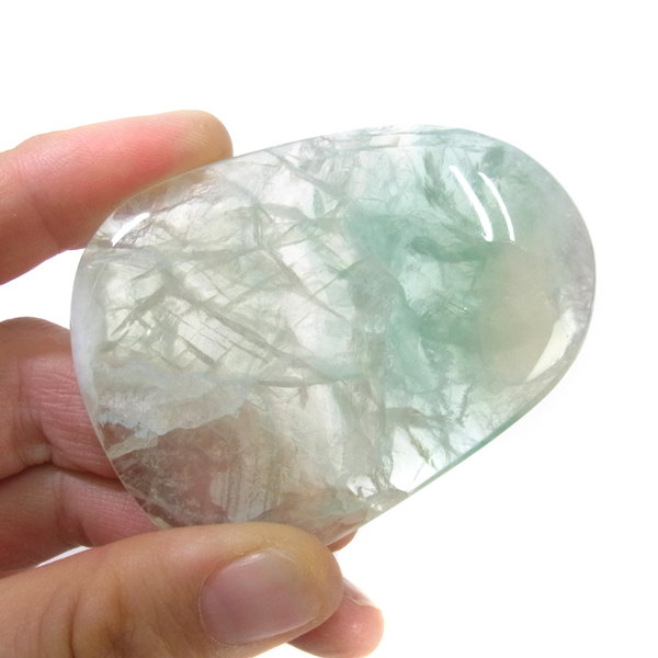 チャイナ産のグリーンフローライト、ペブルです。透明感のあるグリーンとクリアのフローライト。薄めの厚さで結晶の様子がよく確認できます。側面に分かりやすいレインボーが確認でき、またブラックライトの照射で蛍光します。手のひらで握る分にもちょうどよい大きさで石のパワーを感じられるかと思います。何より美しいですので、疲れた時などに、見て、触って、頭をすっきりさせてくれるようなフローライトの特有のものを感じて、リフレッシュしていただければと思います。