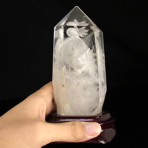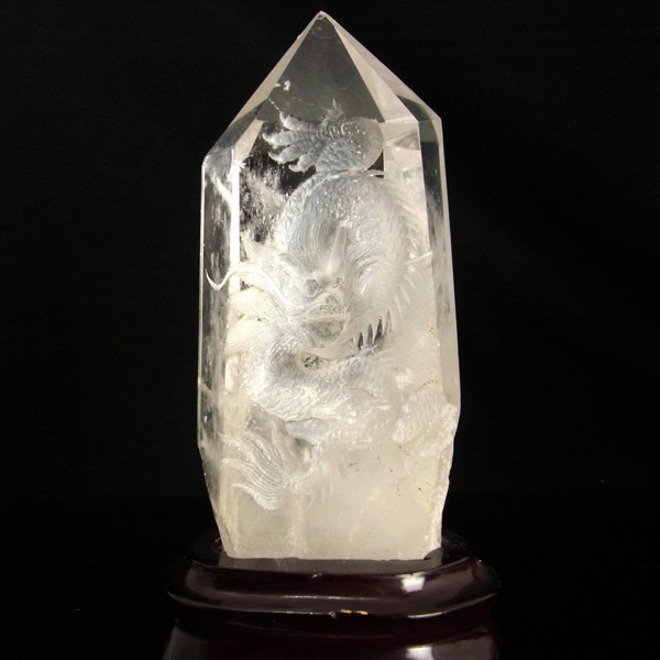 龍彫り水晶ポイント 台付き