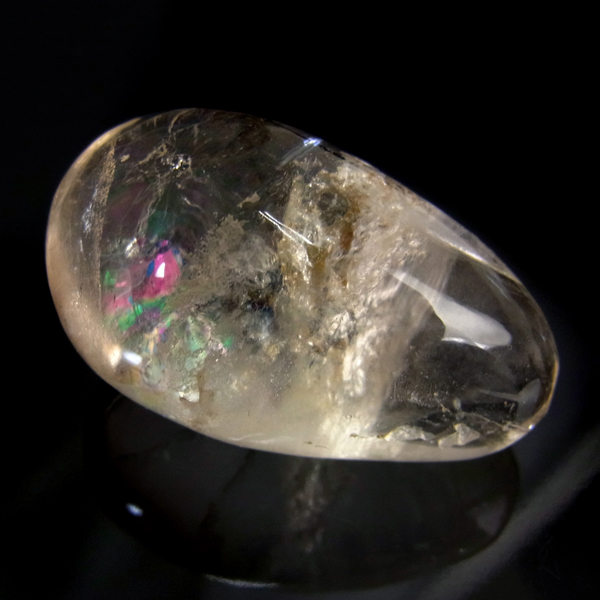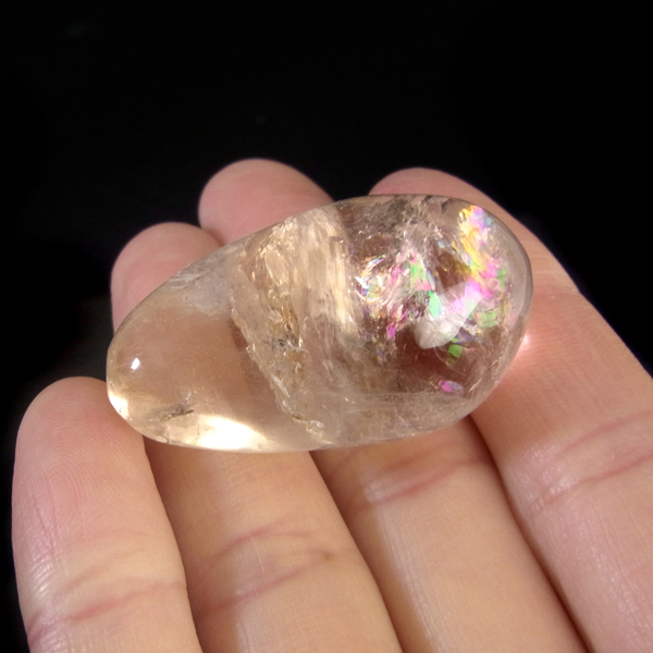 ペルー産のピンクフローライト、タンブルです。 ガラスのような光沢を持つフローライトの中でも、ピンクの色のものは産出量がとても少なく、近年価値や希少性が高まってきた石の中の一つです。 透明度が非常に高く、淡いクリアピンクが心を和ませてくれます。