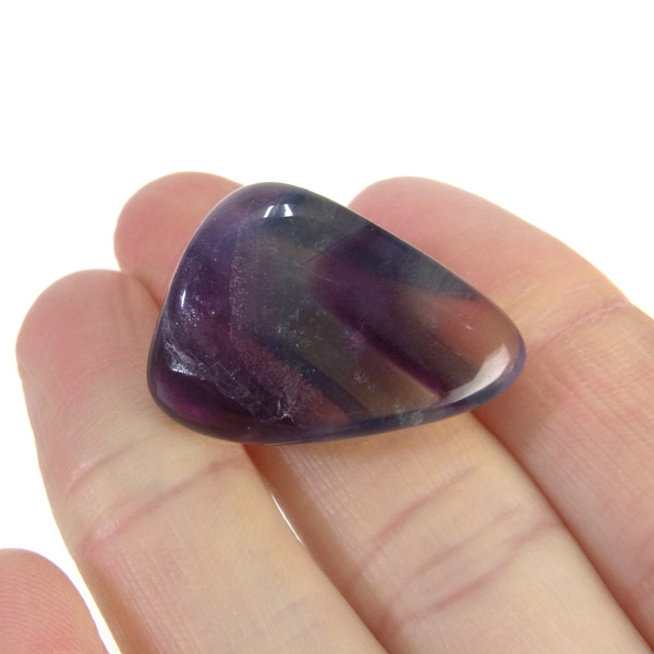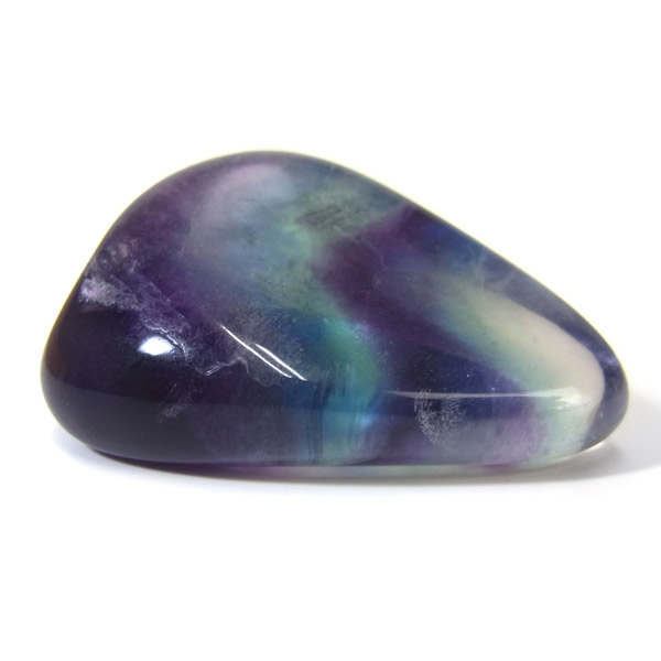マルチカラーフローライト、タンブルです。 大変透明度が高く、いろいろなカラーの色彩が見られます。蛍石の名前の通り、様々な角度からその美しさを楽しむことができます。光にかざして透かすと、カラーが複雑に入り乱れており、そのグラデーションが大変きれいです。