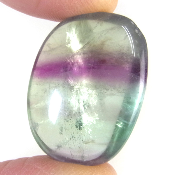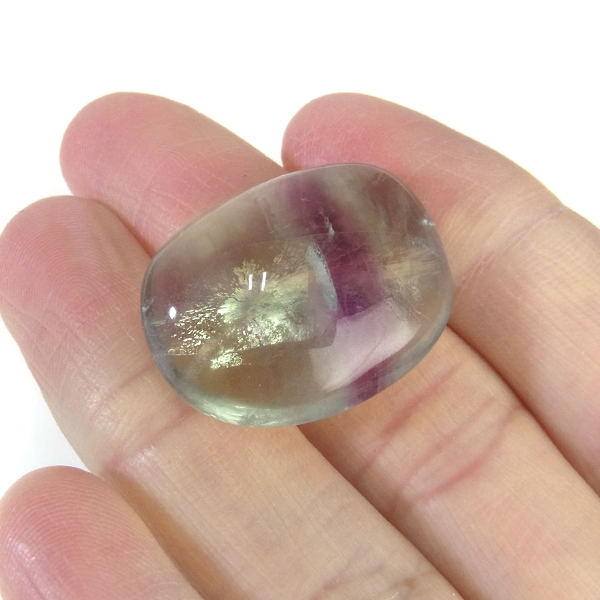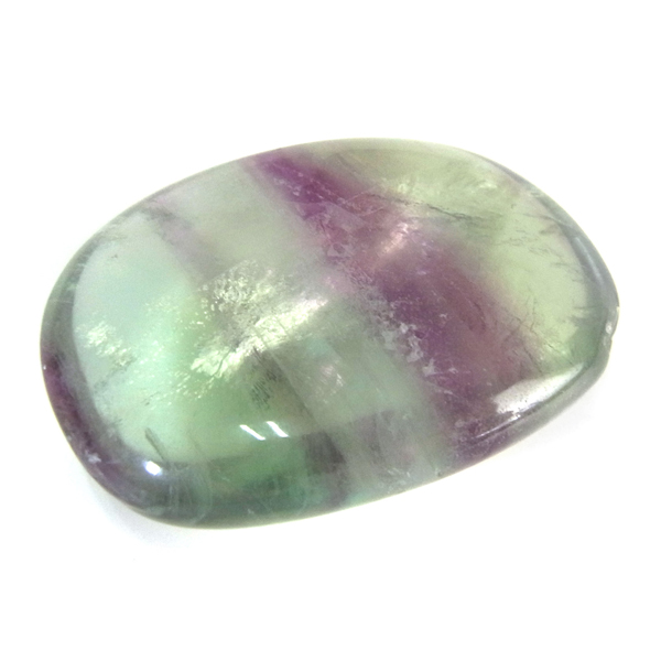 マルチカラーフローライト、タンブルです。 大変透明度が高く、いろいろなカラーの色彩が見られます。蛍石の名前の通り、様々な角度からその美しさを楽しむことができます。光にかざして透かすと、カラーが複雑に入り乱れており、そのグラデーションが大変きれいです。