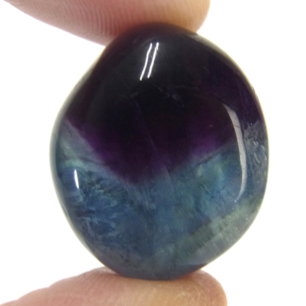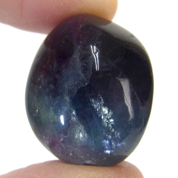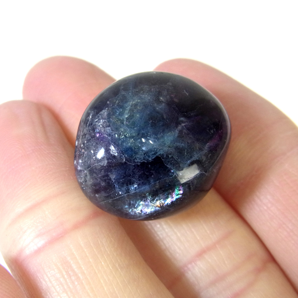 マルチカラーフローライト、タンブルです。 大変透明度が高く、いろいろなカラーの色彩が見られます。蛍石の名前の通り、様々な角度からその美しさを楽しむことができます。光にかざして透かすと、カラーが複雑に入り乱れており、そのグラデーションが大変きれいです。