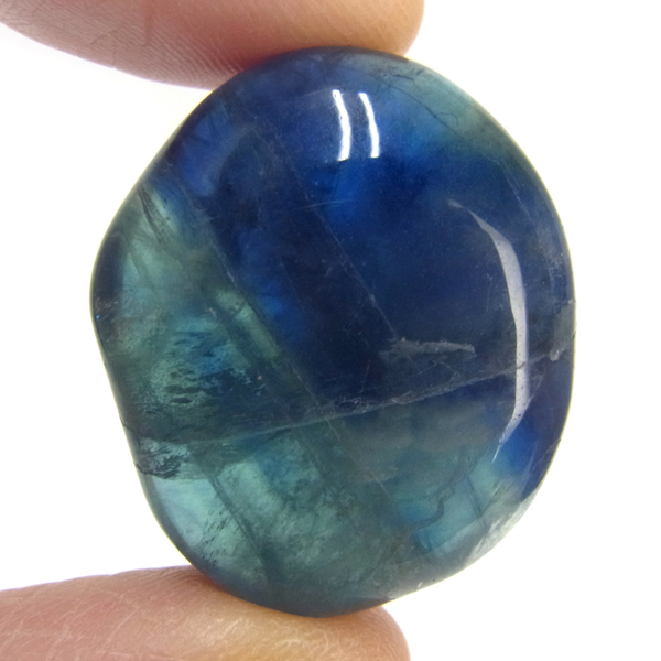 マルチカラーフローライト、タンブルです。 大変透明度が高く、いろいろなカラーの色彩が見られます。蛍石の名前の通り、様々な角度からその美しさを楽しむことができます。光にかざして透かすと、カラーが複雑に入り乱れており、そのグラデーションが大変きれいです。