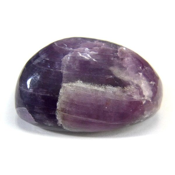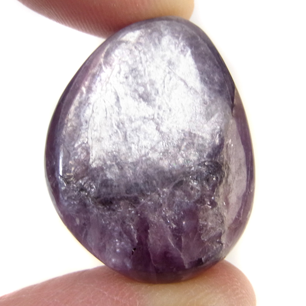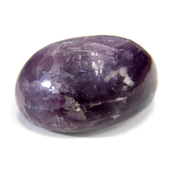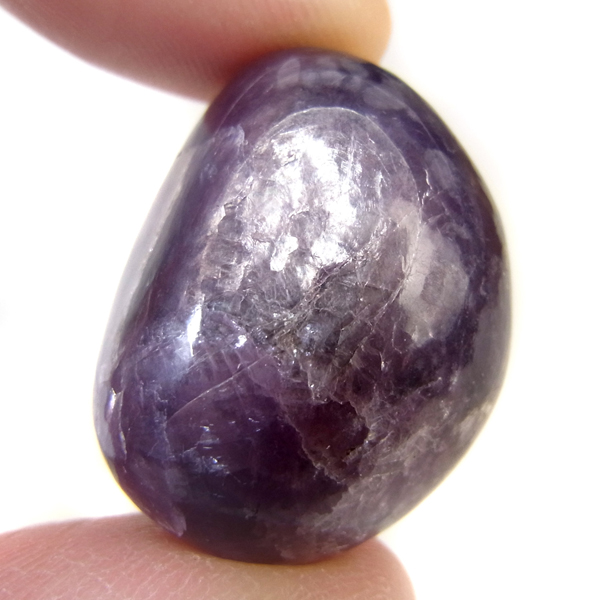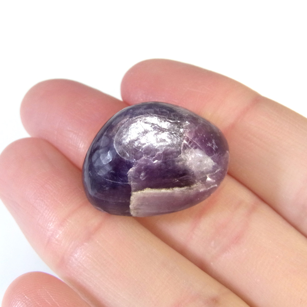 ロシア産レピドライト、タンブルです。レピドライトの持つ鮮やかなパープルは、リチウムの発色によるものです。レピドライトの最大の特徴は、落ち着いたシルバーパープルの色合いと、光の当たる角度によって見られる、ガラス光沢のキラキラとした美しい輝きです。雲母の一種で、リチウムを多く含んでいるため、和名を「リチア雲母」といいます。このキラキラとした輝きは、雲母によるものです。レピドライトの中でもここまでの光沢ある輝きはなかなか出会えない質の良い一点です。