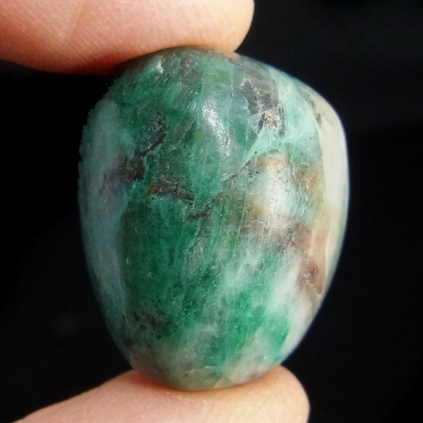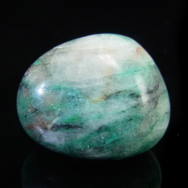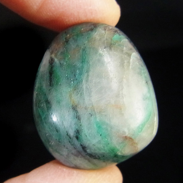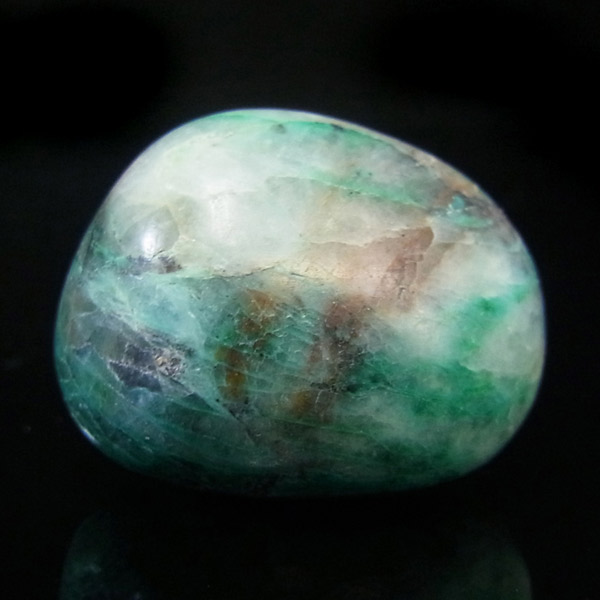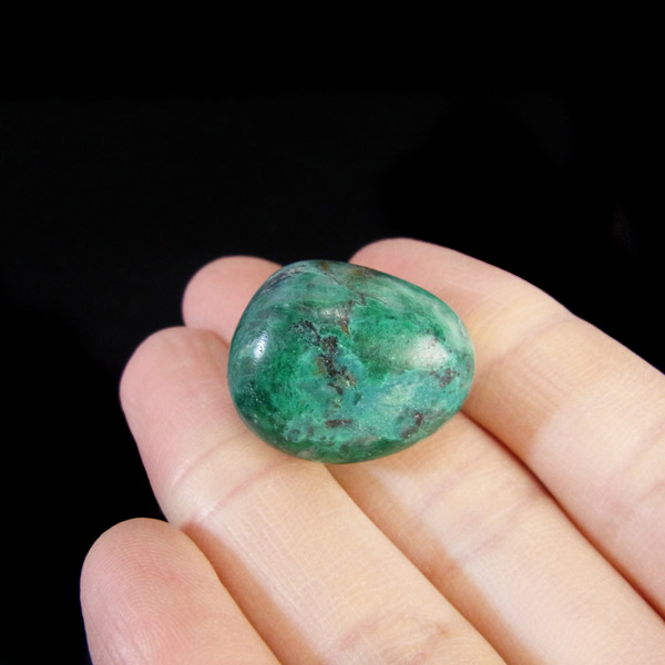 ペルー産ジェムシリカ、タンブルです。ジェムシリカとは、クリソコラをベースに水晶(石英)が長い年月をかけて混じりあったものです。非常に貴重で、限られた条件の下でしか生成されないため産出量が極めて少ない鉱物です。