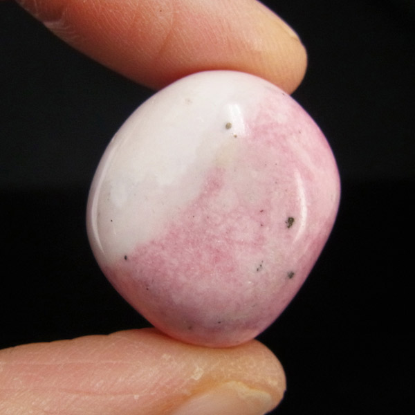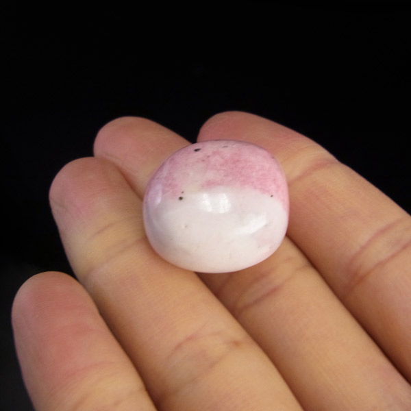 ペルー産のロードナイトシリカ、タンブルです。ロードナイトシリカとは、ロードナイトをベースに水晶成分が長い年月をかけて混ざりあったものです。結晶化していないためクォーツとは呼ばずロードナイトインクォーツではなくロードナイトシリカと呼ばれています。ロードナイトの赤とシリカの白が混ざり合うことでミルキーでかわいいピンク色の発色になります。ジェムシリカ(クリソコラ)やエンジェルシリカ(チャロアイト)も同じくシリカと混ざり合った鉱物として知られています。