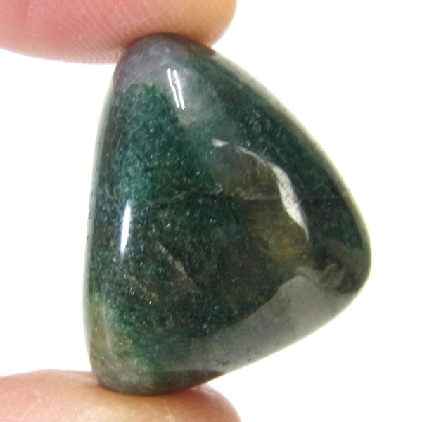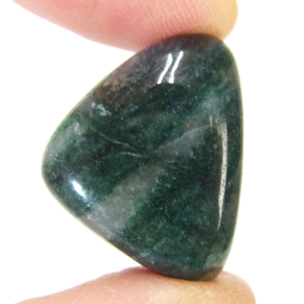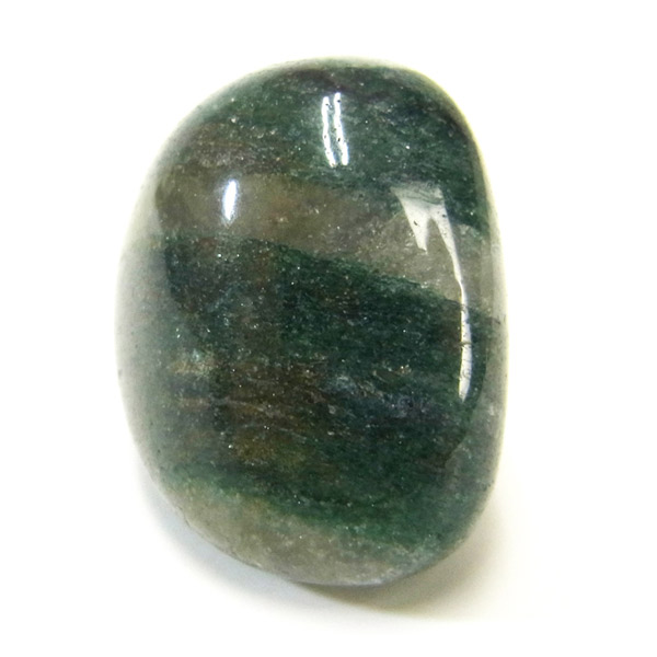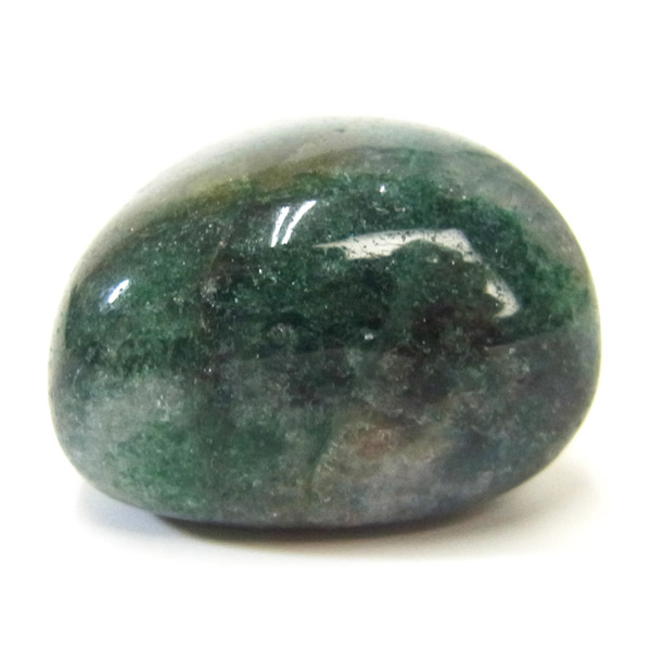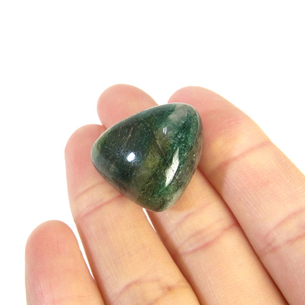 南アフリカ産のフックサイト、タンブルです。フックサイト、発音によりフクサイト、またはクロムマイカと呼ばれております。マイカ(雲母)グループの中のモスコバイト(白雲母)の変種で緑色になったものがフックサイトです。和名はクロム白雲母でクロムにより緑色に発色しております。写真では分かりずらいですが、雲母の粒子で表面はキラキラとしております。