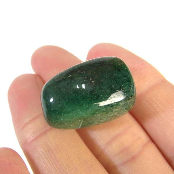 南アフリカ産のフックサイト、タンブルです。フックサイト、発音によりフクサイト、またはクロムマイカと呼ばれております。マイカ(雲母)グループの中のモスコバイト(白雲母)の変種で緑色になったものがフックサイトです。和名はクロム白雲母でクロムにより緑色に発色しております。写真では分かりずらいですが、雲母の粒子で表面はキラキラとしております。