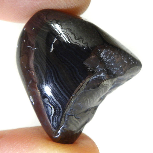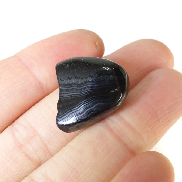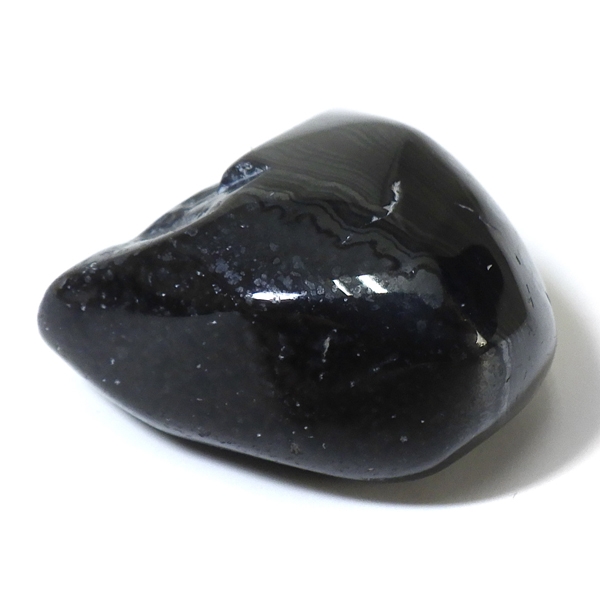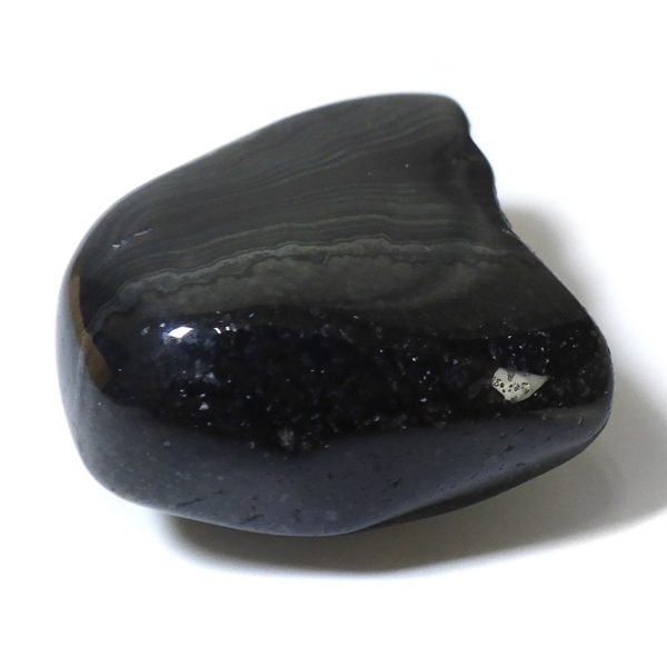 メキシコ産サイロメレーンのタンブルです。サイロメレーンはマンガンを主とした酸化鉱物でホランダイトやロマネカイトなど複数のマンガン酸化物の集合体です。黒のサイロメレーンに銀のパイロルーサイトを伴っております。和名はサイロメレーンが硬マンガン鉱、パイロルーサイトが軟マンガン鉱です。磨き上げることでメタリックな金属光沢を持つ不思議な縞模様が現れます。ヘマタイトに似ていることからリボンヘマタイトという流通名が付けられたりしておりますが、ヘマタイトにはマンガンが含まれておりませんので似て非なるものになります。