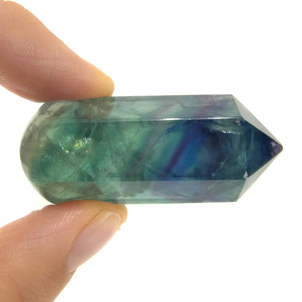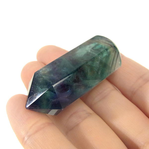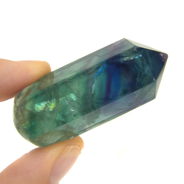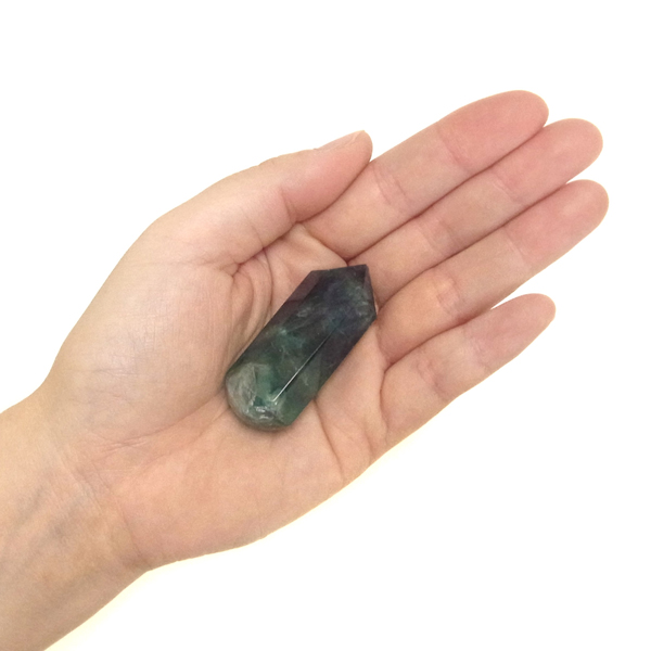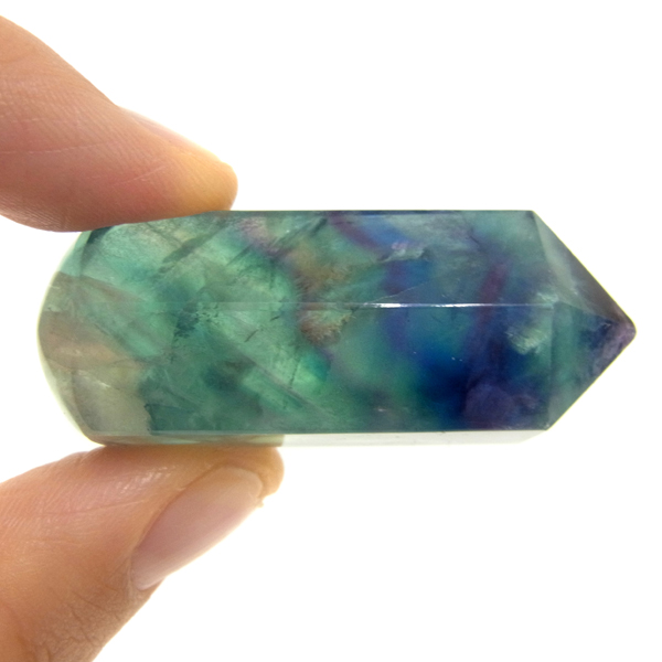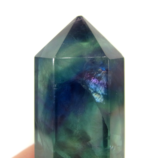 チャイナ産のフローライトポリッシュポイントです。チャイナ産のフローライトは塊状で色合いが層になって現れます。それを磨きあげることで、まこときれいなフローライトのアイテムになります。底面を丸く磨いており、手のマッサージに使うとポイントの先端から悪い気が出ていくとされています。天然鉱物とは思えないほどの絵具で色を混ぜたようなきれいな色合い。光に透かすとステンドグラスのようでより一層きれいです。