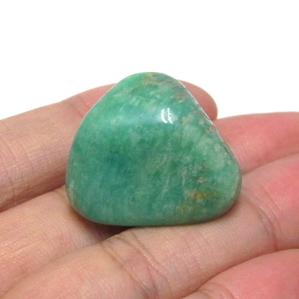 ロシア産のアマゾナイト、タンブルです。アマゾナイトといえば、世界中で広く産地が分布しています。 産地により特徴も様々で、一般的にはロシア産のアマゾナイトは、グリーンに霜を降ったような白の発色が美しいことが特徴です。 ミントをイメージする清々しいグリーンが大変人気の石です。