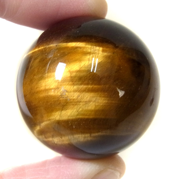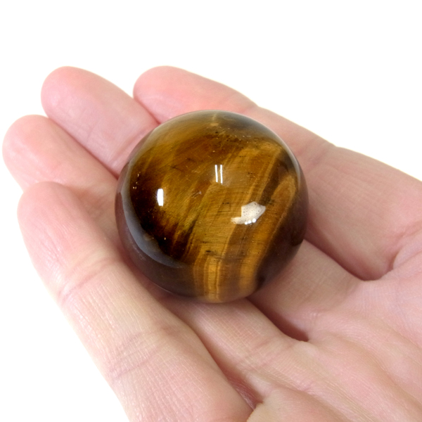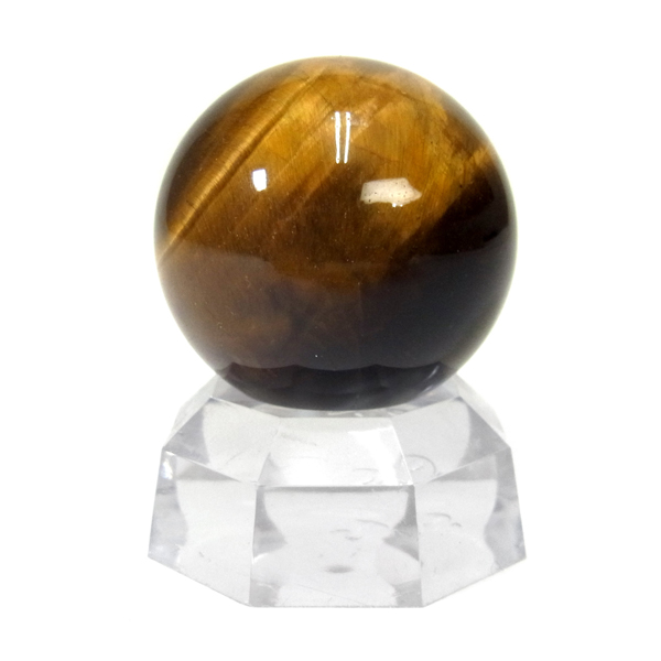 南アフリカ産のタイガーアイ球です。タイガーアイは、キャッツアイ効果で茶色から金色の縞模様が浮かび、輝きが虎の目を連想させる事からタイガーアイと呼ばれるようになりました。 一般的に金運といえばタイガーアイで水晶やアメシストなどと同等の認知度があり、非常に人気がある石です。