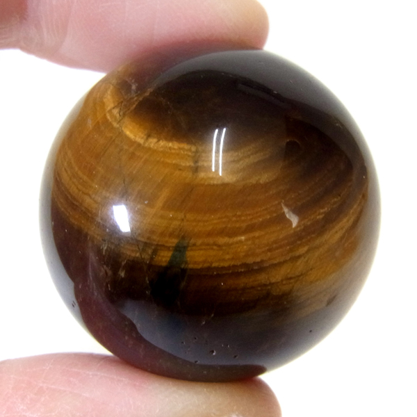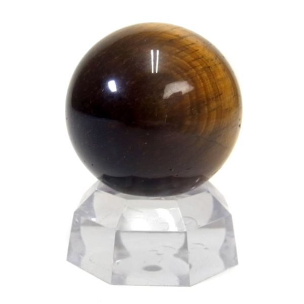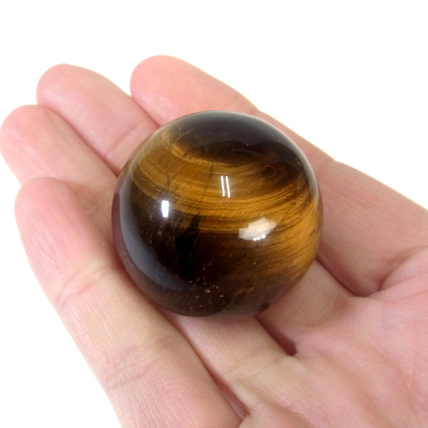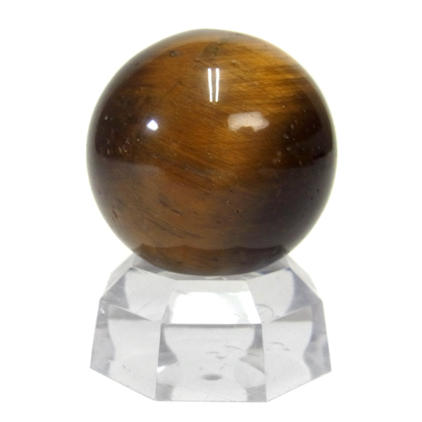 南アフリカ産のタイガーアイ球です。タイガーアイは、キャッツアイ効果で茶色から金色の縞模様が浮かび、輝きが虎の目を連想させる事からタイガーアイと呼ばれるようになりました。 一般的に金運といえばタイガーアイで水晶やアメシストなどと同等の認知度があり、非常に人気がある石です。