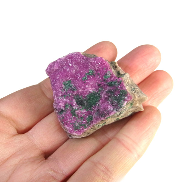 コンゴ産のコバルトカルサイト原石です。コンゴ産の特徴はコバルト特有なビビットなピンクで、細やかな結晶はキラキラと美しく輝き、母岩を覆い尽くすように結晶しています。更に、コバルト系の鉱物にも関わらず、マラカイト・クリソコラ・パイライト・スクテルド鉱など様々な鉱物が混入するユニークなものです。これはモロッコ産にはまったく見られない特徴で、コンゴ産ならではのものといってよいでしょう。