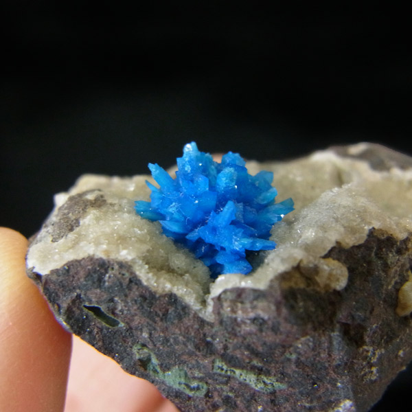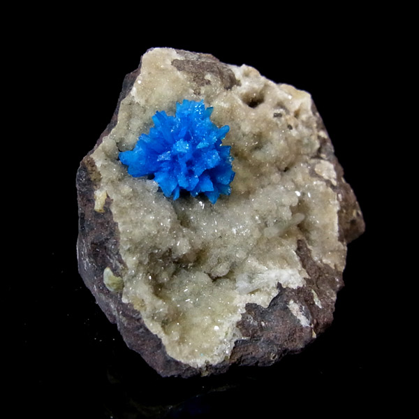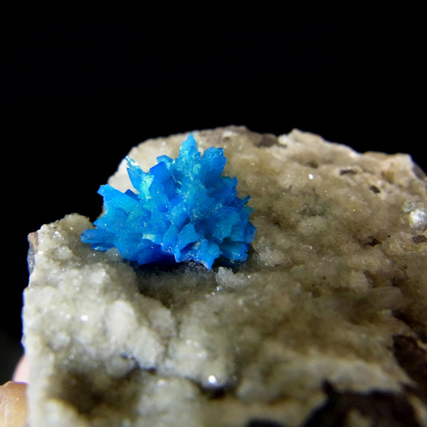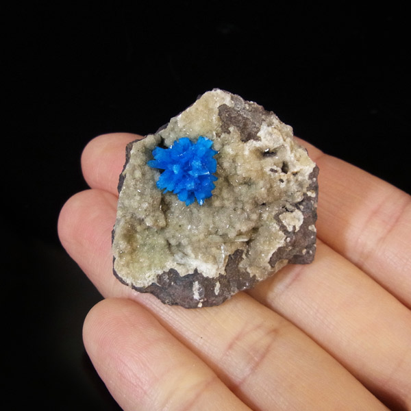 インド、プネー産のカバンサイト原石です。カバンサイトは、沸石の中でも人気を誇る、美しいビビッドな青い発色が魅力的です。こんぺいとうを思わせるぼんぼり状で、愛嬌のあるその形は、多くのファンに愛されています。主成分の、「カルシウム」「バナジウム」「シリコン」の3つの頭文字をつなげて「カバンサイト」と付けられたのが名前の由来です。1973年にアメリカで発見された、まだ歴史の浅い石で、発見されたのはアメリカですが、現在ではまずアメリカでは採れず、インドで採掘が続けられています。