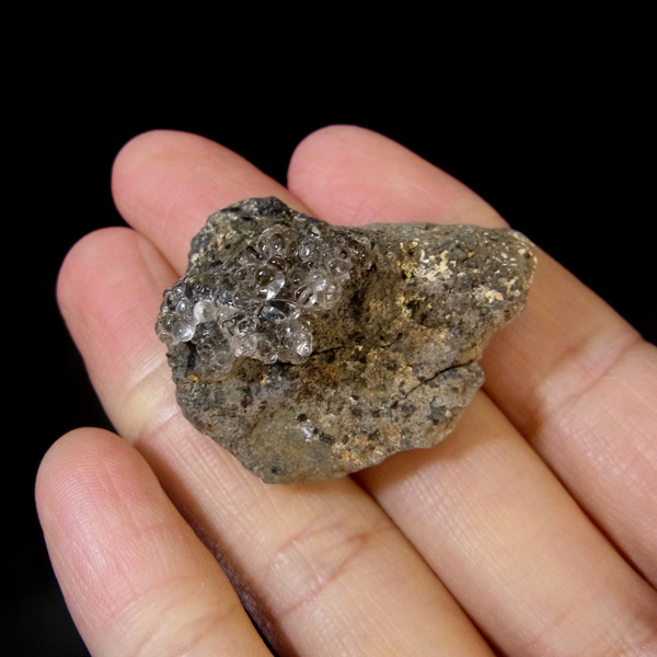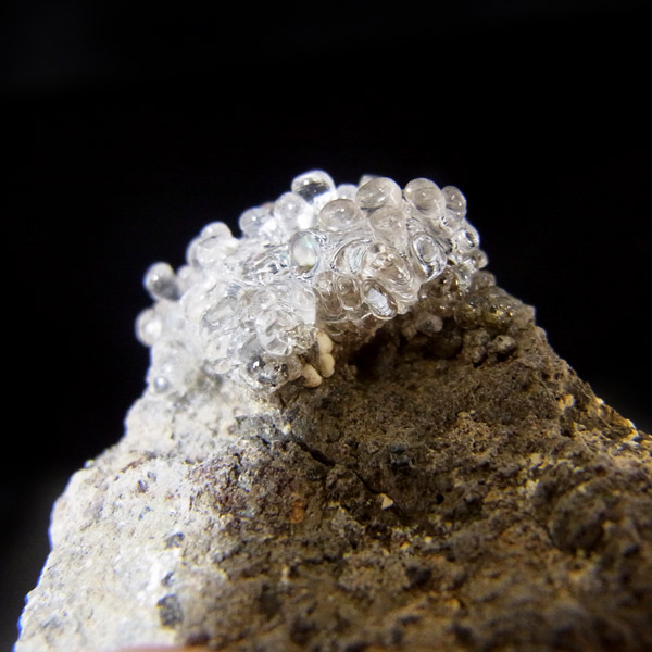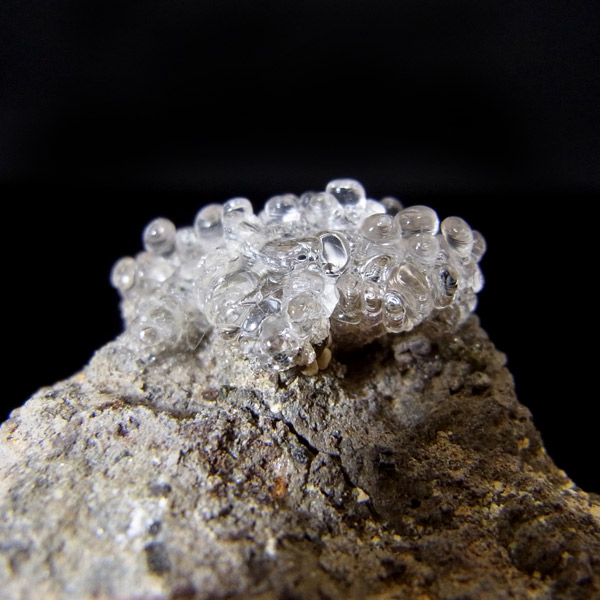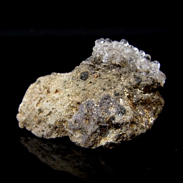 チェコ産のハイアライト原石です。ハイアライトの和名は「玉滴石(ぎょくてきせき)」で、別名「グラスオパール」とも呼ばれているように、最も透明度の高い「オパール」の一種です。地下水に溶けた二酸化ケイ素が常温で無色透明の水滴のように固まってできた天然鉱物です。