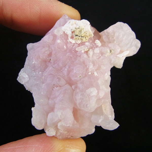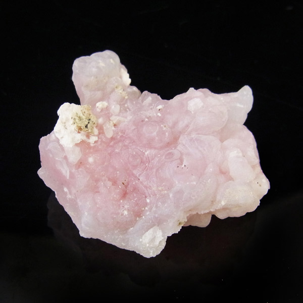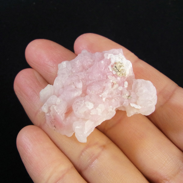 ペルー産のピンクオパール原石です。一般的に流通しているピンクオパールの原石は、「塊状」のものが殆どです。しかしこのピンクオパールは、塊状ではなく 見事に結晶化したものです。モコモコとしたコブ状の表面は愛らしく、甘い彩りのピンク色が目を楽しませてくれます。ピンクオパールが このようなコブ状結晶をする事自体 あまり知られていませんが、流通する事は尚更のこと稀です。